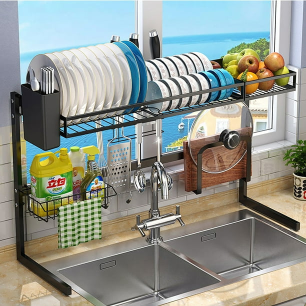 Buy stainless steel dish drain rack over the sink dish rack dishes drying shelf kitchen supplies storage rack for single double sink from walmart canada.