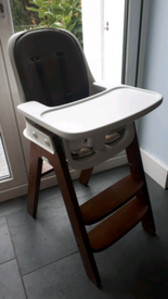 Height and depth adjustments as well as removable parts allow it to convert from high chair to youth chair.