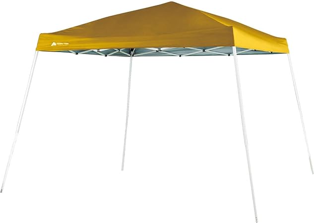 The ozark trail 10 x 10 slant leg canopy sits on four slanted legs for extra security.