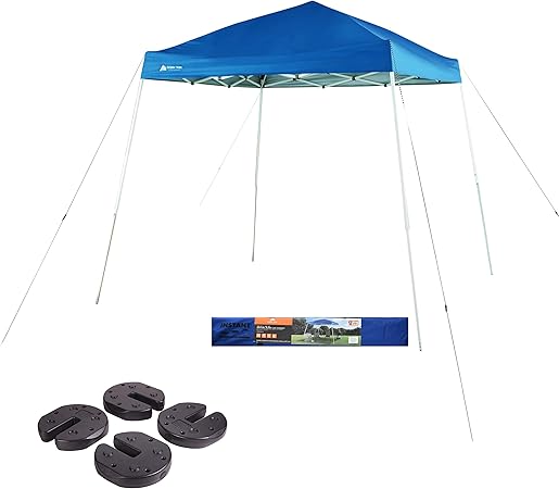 It includes a handy carrying bag for added convenience during transport take this shade creator on a camping trip to enjoy time out of the sun or rain ozark trail 10 x 10 instant slant leg canopy blue covers a 10 x 10 areaprovides 64 sq ft of cooling.