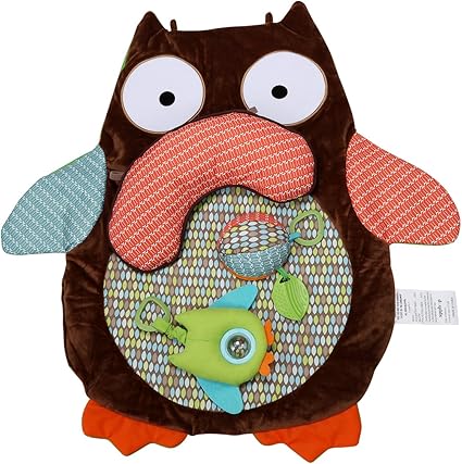 This quilted mat is shaped like an owl and features a variety of fun textures and patterns.