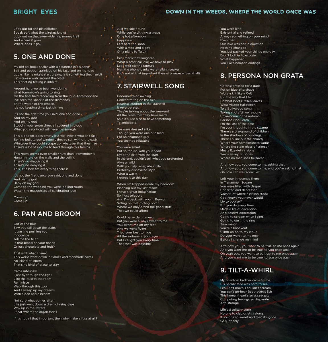 The uncanny moment occurs almost halfway through bright eyes 10th album down in the weeds where the world once was.