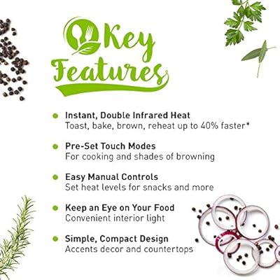 The panasonic nb g110p flashxpress toaster oven features double infrared near and far heating which means instant heat no preheating necessary.